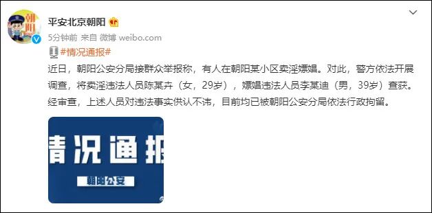 2021年10月份朝阳公安分局接群众举报称,有人在朝阳某小区卖淫嫖娼。对此,警方依法开展调查,