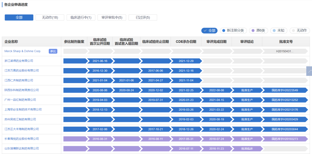 目前仍有20+家企业提交的上市或临床申请,等待审评或正在审评过程中。