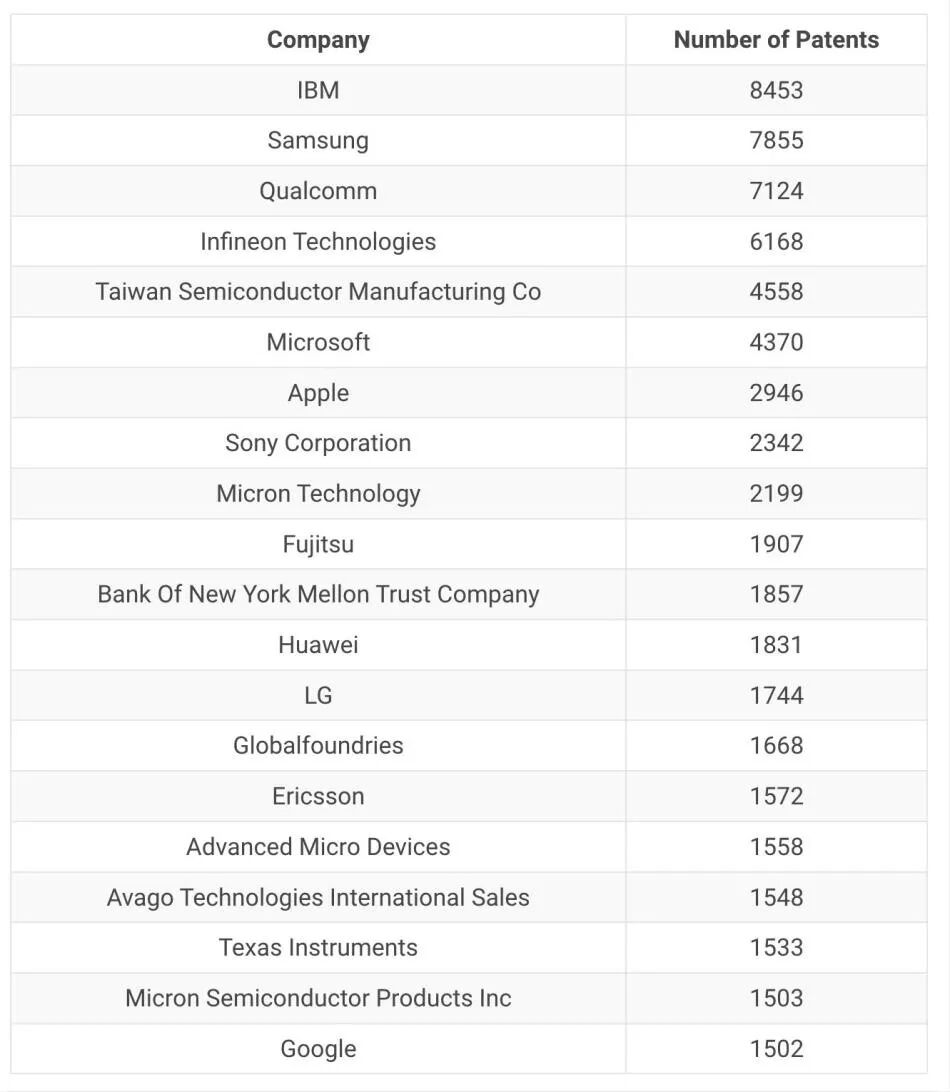 在半导体这个资本密集型、技术密集型的产业中,随着半导体企业的增多,专利的分量也在与日俱增,对专利的保护意识也明显加强。现在,一颗芯片往往由数十亿甚至上百亿个晶体管组成,每个晶体管或者组件都可以申请专利。而半导体领域的芯片巨头们无疑是坐拥专利池的佼佼者,过往在专利上的积累,正让他们收获新的营收来源,华为就是一个很好的例子。