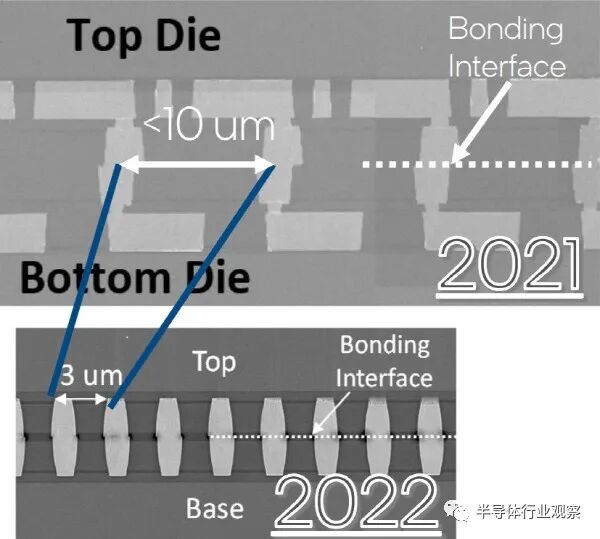 从相关报道可以看到,混合键合有三大优势,第一为可以达到超细间距与超小接点尺寸,故可以达到超高I/O 数目;第二,由介电材料接合取代底部填充剂可以省去填充成本;第三,覆混合键合则几乎没有厚度,未来发展的3D 封装技术需要堆叠非常多层芯片,因此利用混合键合可以大幅减少总体厚度。