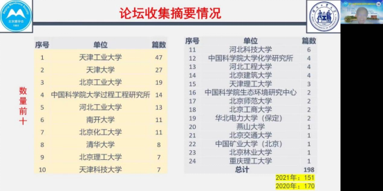 论坛共有来自清华大学、天津大学、北京理工大学、北京化工大学、北京工业大学、天津工业大学、北京师范大学、中国矿业大学、北京交通大学、北京建筑大学、北京工商大学、北京林业大学、南开大学、天津科技大学、天津理工大学、河北工业大学、燕山大学、河北科技大学、河北工程大学、中国科学院过程工程研究所、中国科学院生态环境研究中心、中国科学院化学研究所、重庆理工大学等单位专家学者80余人、博士和硕士研究生300余人报名参加。