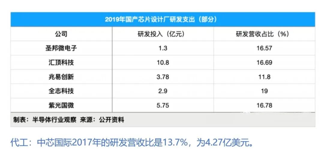 由于国内半导体企业普遍比较弱小,因此研发支出也是捉襟见肘。
