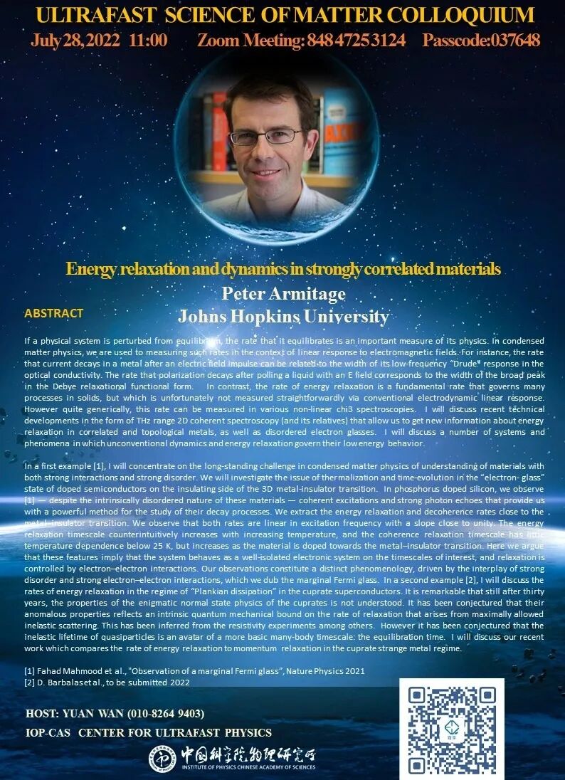 “超快物质科学论坛”是中国科学院物理研究所超快物质科学中心组织的系列研讨会。论坛主要就超快物质科学领域中的前沿和热点问题进行交流,旨在促进国内外物理学家间的深度思想碰撞,扩大国内外物理学家间的合作和交流,为布置和引领物质科学前沿研究提供助推力。