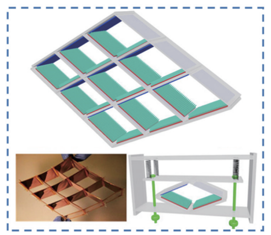 单一的工作模式所产生的电量有限的,施加一个外力使多种工作模式产生协同作用,则发电量也会增加。研究者提出了波浪形结构的设计,拥有波浪形结构的聚合物薄膜在外力作用下发生形变,呈现平板状。