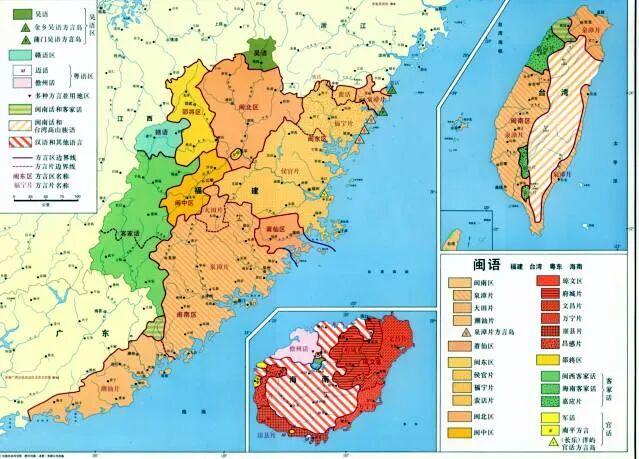 康熙二十二年(1683 年),台湾入清朝版图,此后海禁遂开,闽南沿海的福佬人和粤东山地的客家人开始向台湾移民,两者的比例在日本占领初期是四比一,这就是今天台湾方言以闽南方言为主、并杂以客家方言的原因。