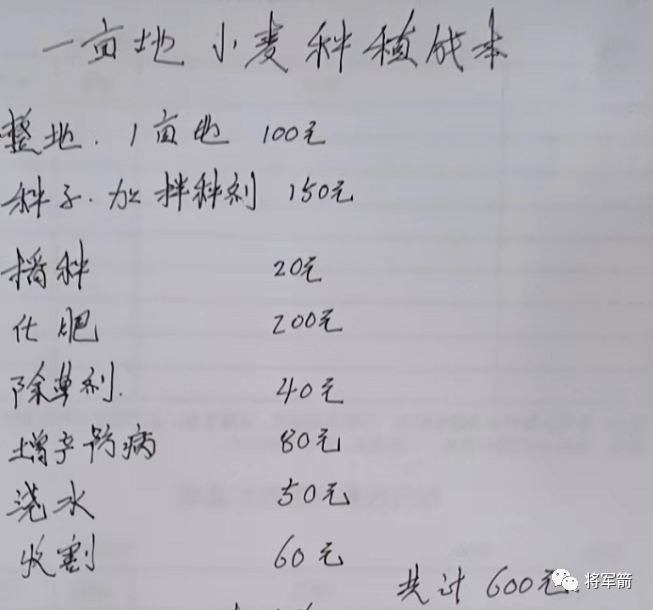 成本方面,种子、播种费、化肥、除草剂及农药、浇水、收割机费用…保守估计也是600元/亩。