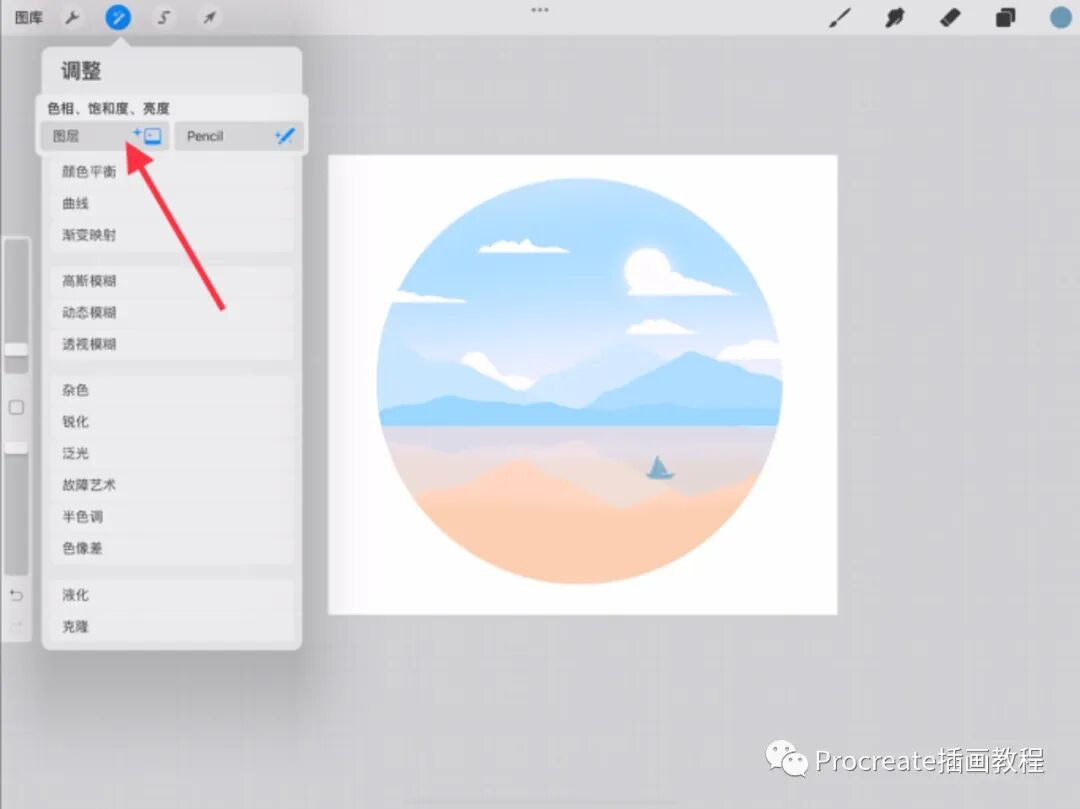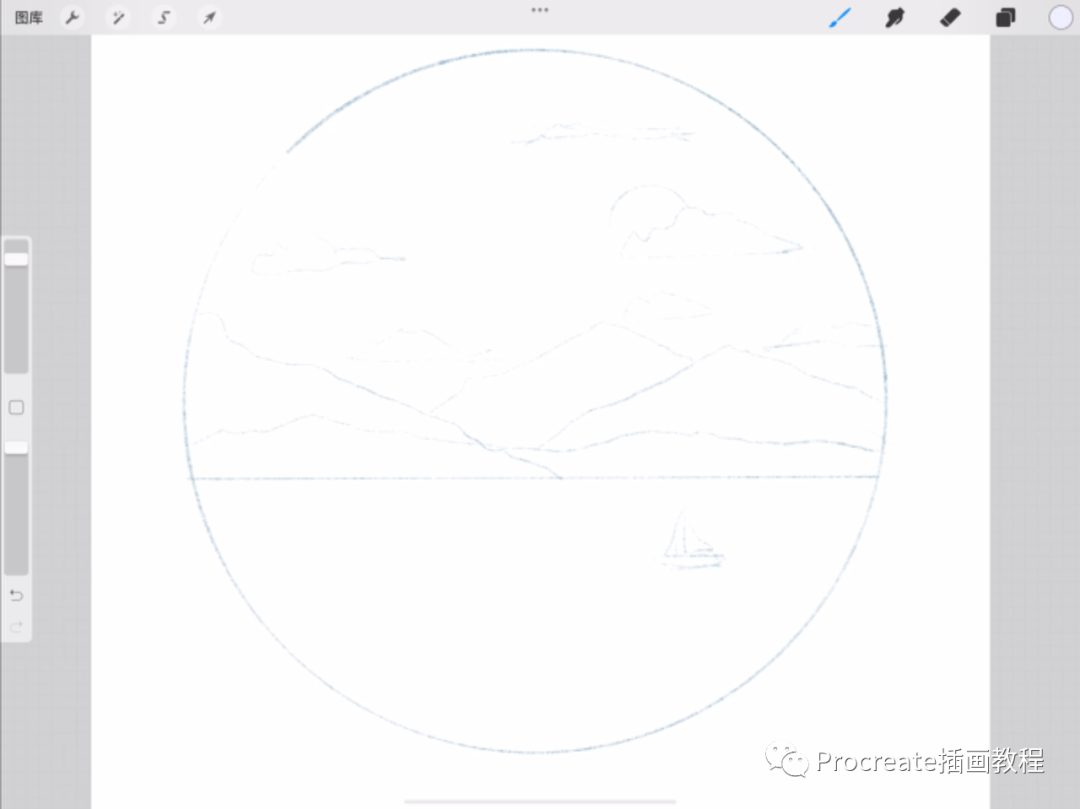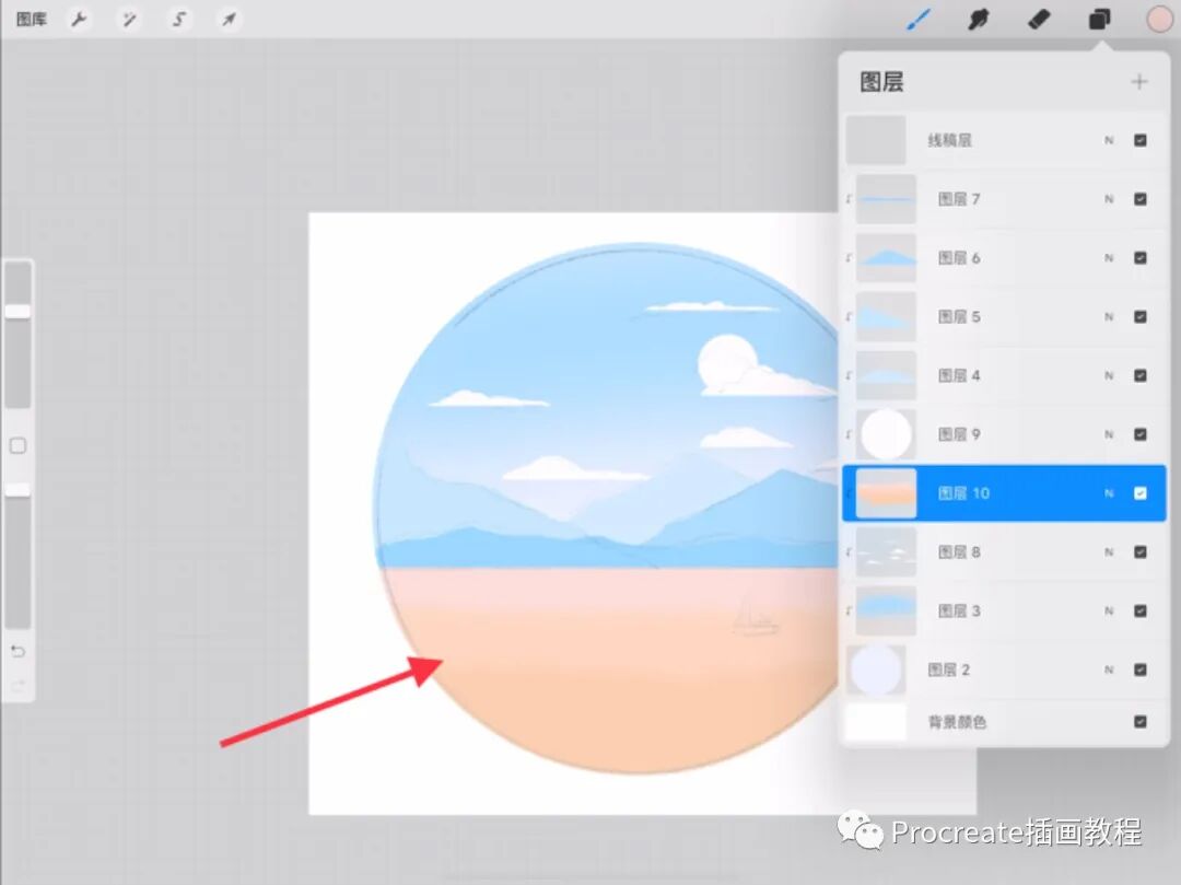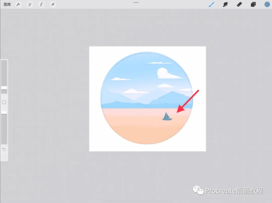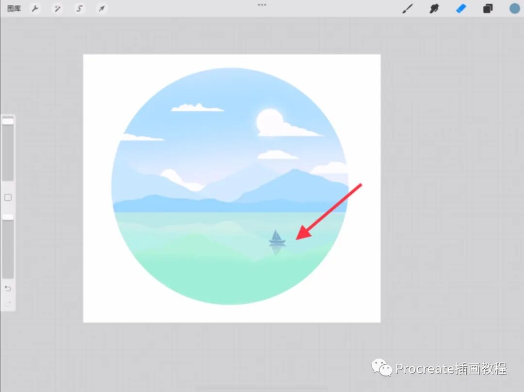 右滑选中山的所有图层,两个手指把图层捏在一起合并图层