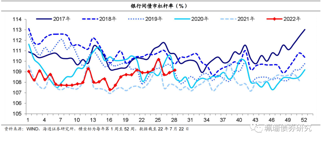 (6)上周,银行间杠杆率继续回升。杠杆套息性价比仍高,至7月22日当周银行间债市杠杆率为109.2%,环比上行0.2个百分点、同比上行1.5个百分点。