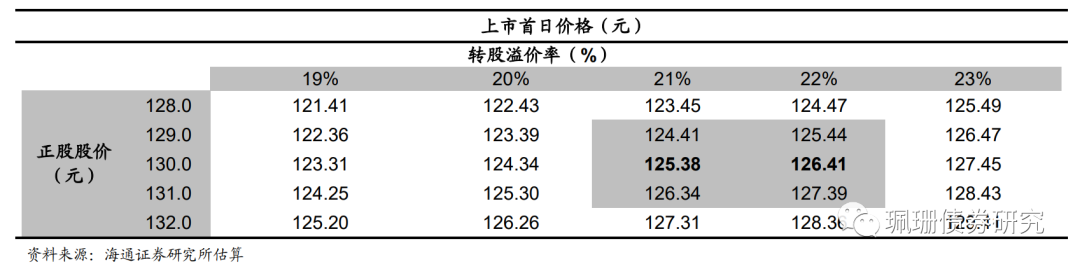 下修条款较为严苛。6个月后进入转股期,初始转股价为125.46元/股,按照8月31日正股收盘价计算,对应转债平价为104.02元。下修条款(15-30,80%)、提前赎回条款(15-30,130%),回售条款(30,70%)。