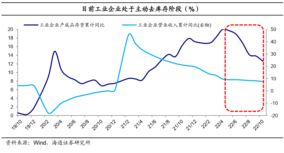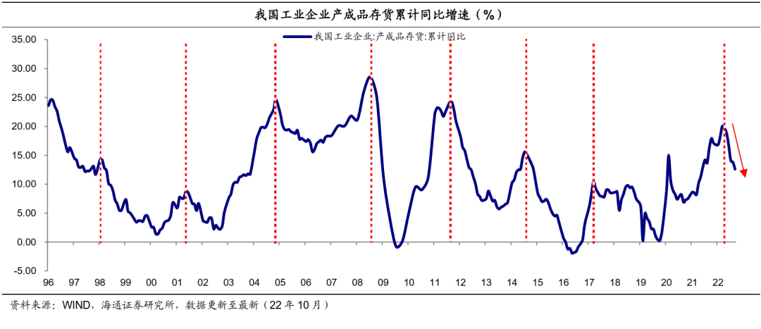 2. 我国库存周期当前运行至何处?随着10月PPI同比增速转负、11月疫情防控优化措施二十条落地,市场上关于PPI何时见底回升、需求端何时向好、对应的库存周期何时从去库存到补库存的讨论增多,本文章主要对当前库存周期所处位置、未来走势进行探讨,详细内容如下:1)存货下降+需求向下=指向主动去库存