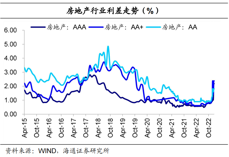 地产行业信用利差走扩。具体来看,截至12月23日,AAA级房地产行业信用利差219BP,较前一交易周末上行2BP。AA级房地产行业信用利差181BP,较前一交易周末上行4BP。地产行业超额利差分化。具体来看,截至12月23日,AAA级地产行业超额信用利差为149BP,较前一交易周末上行3BP。AA级地产行业超额信用利差为37BP,较前一交易周末下行7BP。![]()
