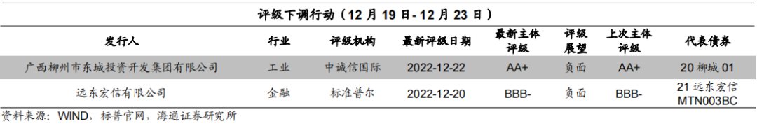 本周评级下调的发行人有2家,为广西柳州市东城投资开发集团有限公司、远东宏信有限公司。