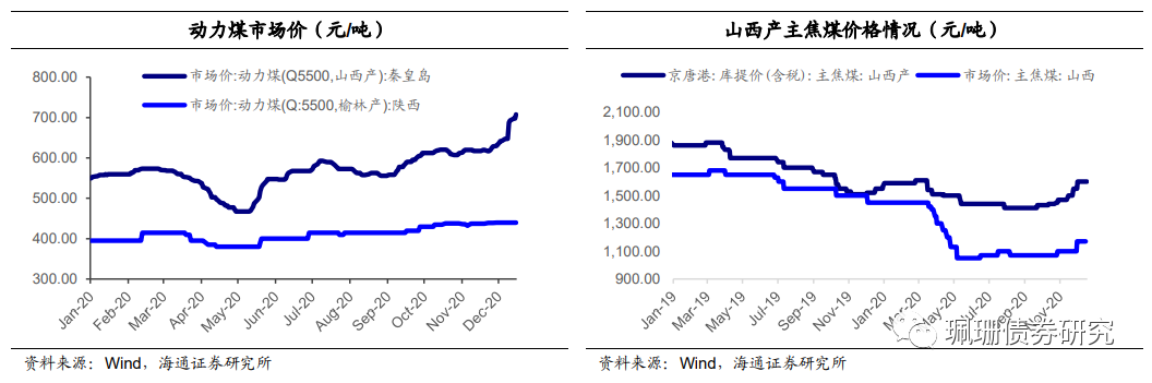 上周截至周三动力煤价格继续上涨,12月以来焦煤、无烟煤及焦炭价格总体呈上升趋势,总体来看焦炭去产能持续推进,短期供需仍偏紧,支撑价格不断上涨,澳煤进口限制叠加蒙古国因疫情致出口大幅下降,焦煤供给持续紧张,同时下游焦炭连续提涨落地,焦煤价格不断回升。