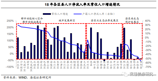 重庆市2019年常住人口约3124万人,户籍人口目前只有2018年的数据,约为3404万人,均超过3000万,其中户籍人口呈持续净流出状态。据WIND数据,截至2018年末,重庆市户籍人口净流入约为-301.85万人,户籍人口净流入率约为-9.82%。京东数科的研究表明,2018年重庆市人口迁入和迁出的主要来源地基本一致,以一线城市和附近城市为主,其中北京和成都为第一和第二大重庆市迁出人口流向地,其次为深圳、上海、广安、广州、达州、遵义、贵阳、东莞、武汉等地。