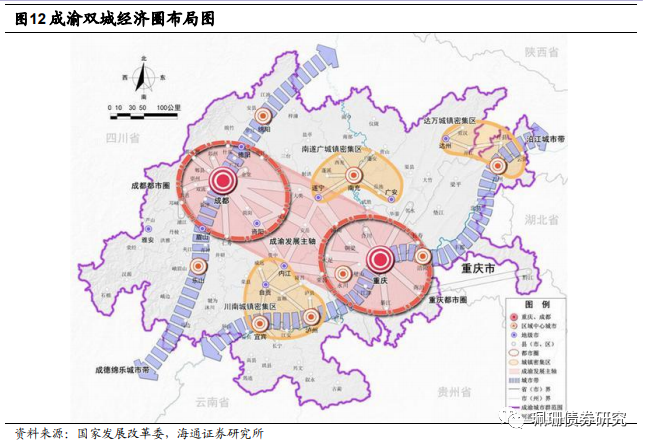 对重庆未来发展的影响来看,该政策较有针对性地促进重庆各区县支柱产业的发展,且注重高新技术产业的融合发展,对重庆未来的经济发展有推进作用。若成功争取国家设立成渝协同发展投资基金,重庆发展将迎来又一重大利好。从区县规划来看,成都、重庆两城试图引导资源向成渝之间的地带转移,所以成渝之间的地带可能受政策辐射更多,重庆主城区中的沙坪坝、九龙坡、北碚以及偏西部的江津地区将继续受到拉动,位于中轴线上的合川、永川、大足、潼南、铜梁、荣昌经济体量虽然相对较小,但有望在双城圈引导下承接一定的产业和资源转移。