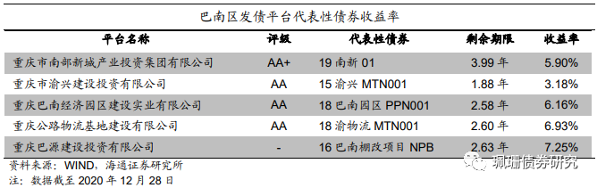 重庆巴南经济园区建设实业有限公司、重庆巴源建设投资有限公司也均为基础建设平台,二者2019年末总资产规模均不大,分别约为238.03亿元、72.7亿元。