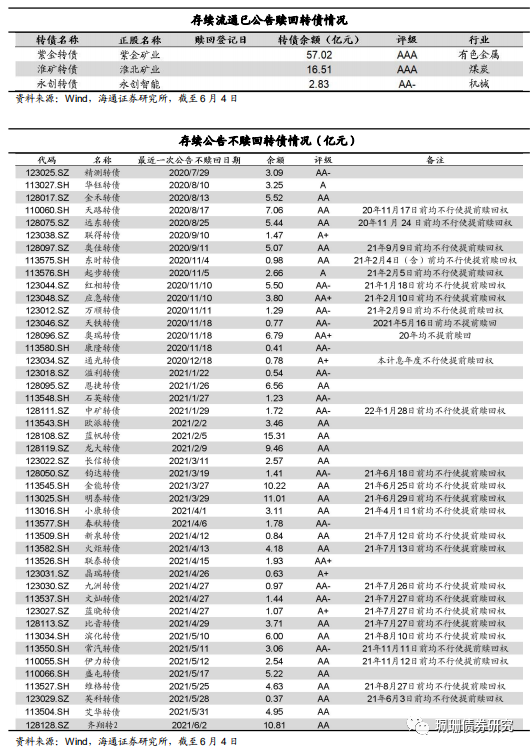 条款:上周淮矿转债、永创转债公布赎回公告,齐翔转 2、艾华转债公告不提前赎回。