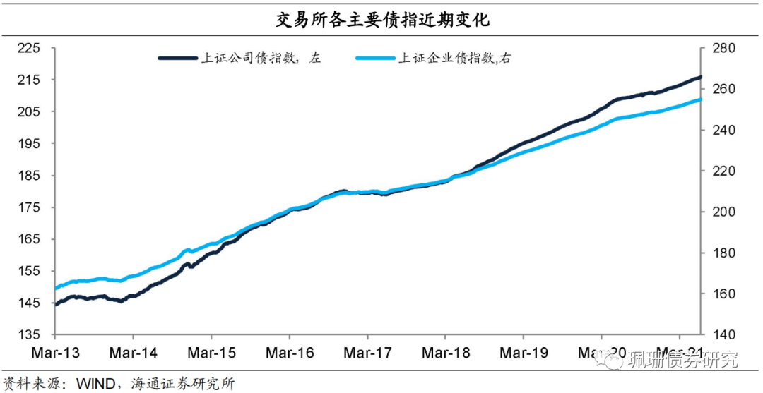 本周交易所债券市场中的公司债与企业债指数均微涨,相比前一周上证企业债指数和上证公司债指数均上行0.10%。