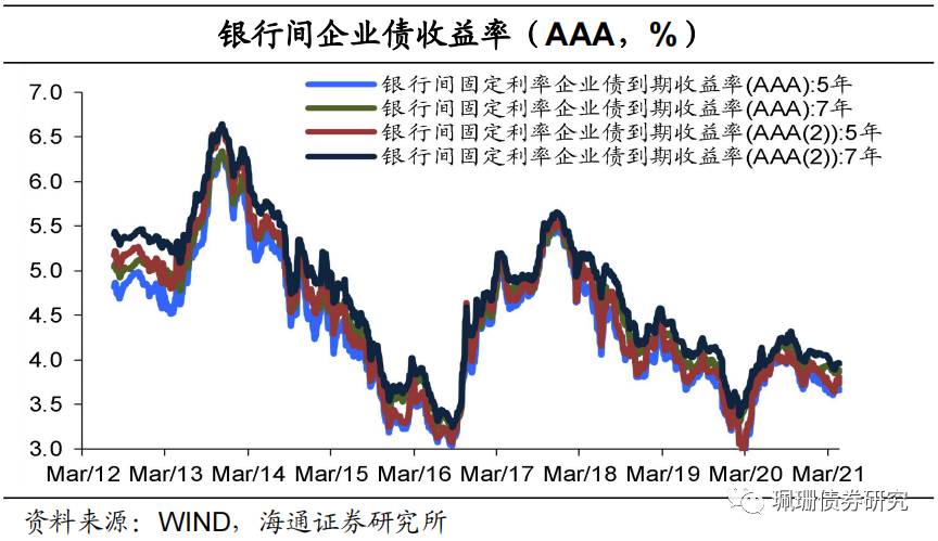 本周银行间企业债收益率下行为主。5年期AAA(城投债)收益率与上期基本持平,5年期AAA(2)(城投债)收益率下行6BP,7年期AAA(城投债)收益率下行2BP,7年期AAA(2)(城投债)收益率下行1BP。5年期AA(城投债)收益率上行1BP,5年期AA(2)(城投债)收益率下行3BP,7年期AA(城投债)收益率下行1BP,7年期AA(2)(城投债)收益率上行1BP。![]()