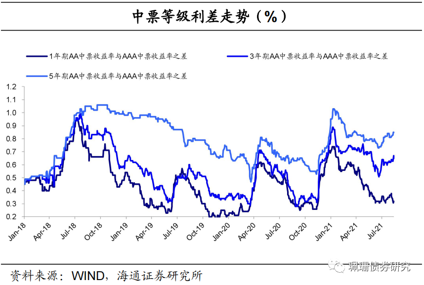 信用债期限利差走扩。具体来看,截至8月13日,5年期和3年期的AAA中票期限利差为36BP,较上周末上行5BP;5年期和3年期的AA中票期限利差为56BP,较上周末上行7BP;5年期和1年期AAA中票的期限利差为73BP,较上周末上行6BP。