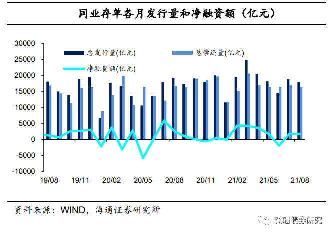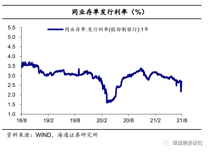 存单量价齐跌。8月,同业存单总发行量为17967亿元,环比减少851亿元;净融资额为1642亿元,环比减少106亿元;1Y股份行存单发行利率月均值为2.66%,环比下行12BP。