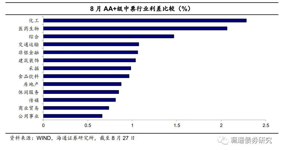 地产行业超额利差分化。具体来看,截至8月27日,AAA级地产行业超额信用利差为28BP,较上月末上行3BP;AA级地产行业超额信用利差为-6BP,较上月末下行8BP。