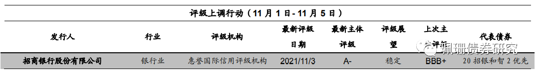 本周评级上调的发行人共1家,为招商银行股份有限公司。