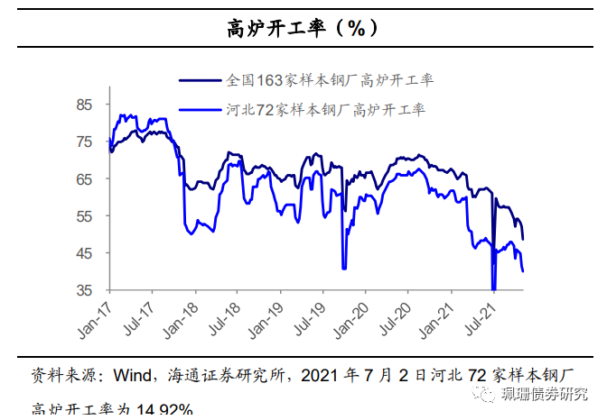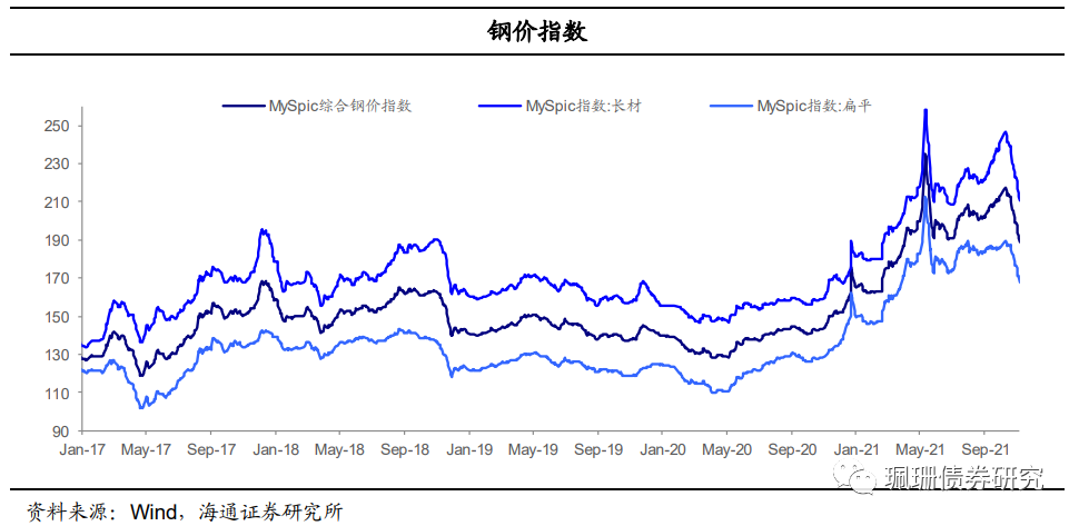 上周钢价继续回落。上周MySpic综合钢价指数环比下跌5.27%,全国高炉开工率为48.48%,环比下降3.59个百分点,河北高炉开工率为40%,环比下跌1.27个百分点。上周全国样本钢厂盈利钢厂占比为61.96%,环比下跌7.98个百分点。