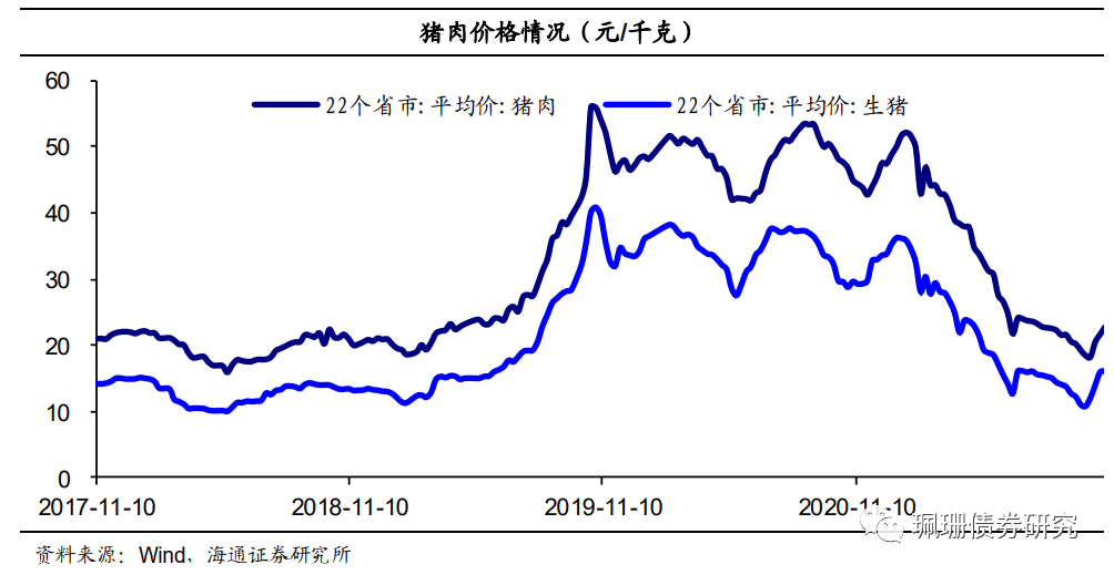 猪肉价格继续回升。上周22个省市平均猪肉价格为22.71元/千克,周环比上涨5.14%,此外上周自繁自养生猪和外购仔猪养殖利润继续上涨。