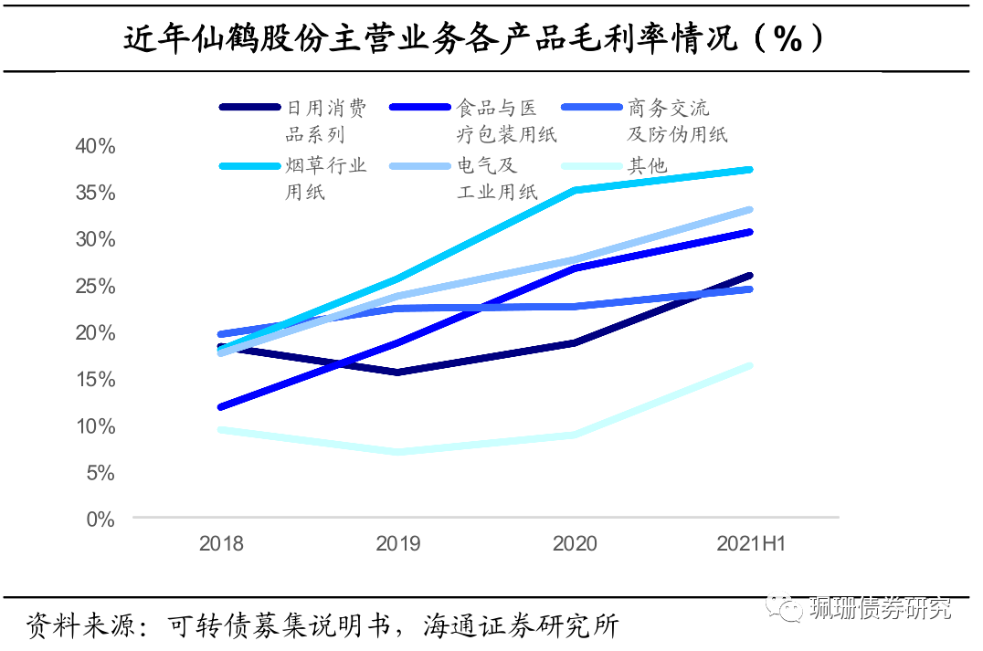 公司是国内特种纸产业的龙头,近年盈利能力稳步提升,毛利率总体相对稳定,且18年以来总体呈略上升趋势。特种纸具有用途针对性较强,单个纸市场容量偏小的特点,多元化有利于寻找发展机遇并且分散下游市场变动风险,公司产品主要包括6大系列60多种产品,且具有一定规模优势,下游方面,食品与医疗包装材料是近期市场需求增长较快的领域,也是公司近期及未来深度开发和耕耘的重点产品系列,此外,公司已经将互联网产业相关产品作为公司未来重要的发展方向,包括标签离型用纸、食品包装用纸、转印系列材料及电气用纸等。同时,关注以纸代塑产品及新型烟草市场的研发。产能方面,公司在国内拥有5个生产基地,截至21年10月末,公司及其合营公司已经具备的年生产能力达110万吨,目前广西年产250万吨项目已经开工,湖北250万吨项目下半年也将正式开工,叠加可转债募投项目产能逐步释放,产品结构有望持续优化,同时布局上游木浆产能。公司采取了有效的成本优化措施,并根据原材料成本变动进行了有效的市场传导,同时研发费用逐年递增,致力于以纸代塑产品及新型烟草市场的研发。正股方面,公司估值(PE-TTM)低于近三年均值水平,短期内无解禁压力。
