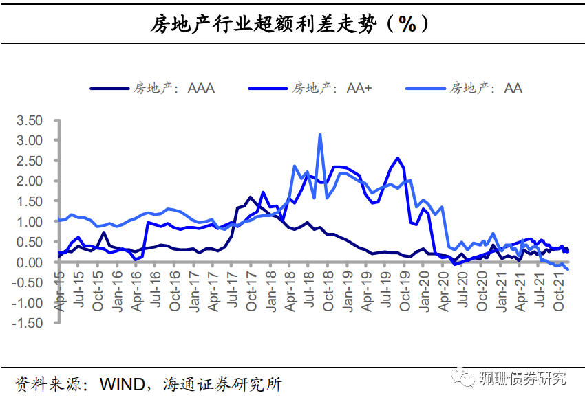 1.5 地产行业:信用利差走扩或持平,超额利差收窄