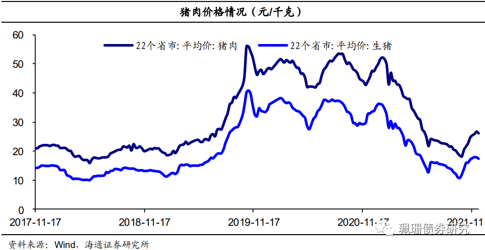 上周钢价稳中有跌。焦煤焦炭期货结算价大幅回调,周环比分别下行18.12%、持平。水泥价格指数继续回调,周环比下跌2.02%。涤纶长丝POY价差收窄265.4元/吨。光伏综合价格指数小幅下跌,周环比下跌1.26%。猪肉价格回调。上周22个省市平均猪肉价格为26.07元/千克,周环比下跌2.25%。