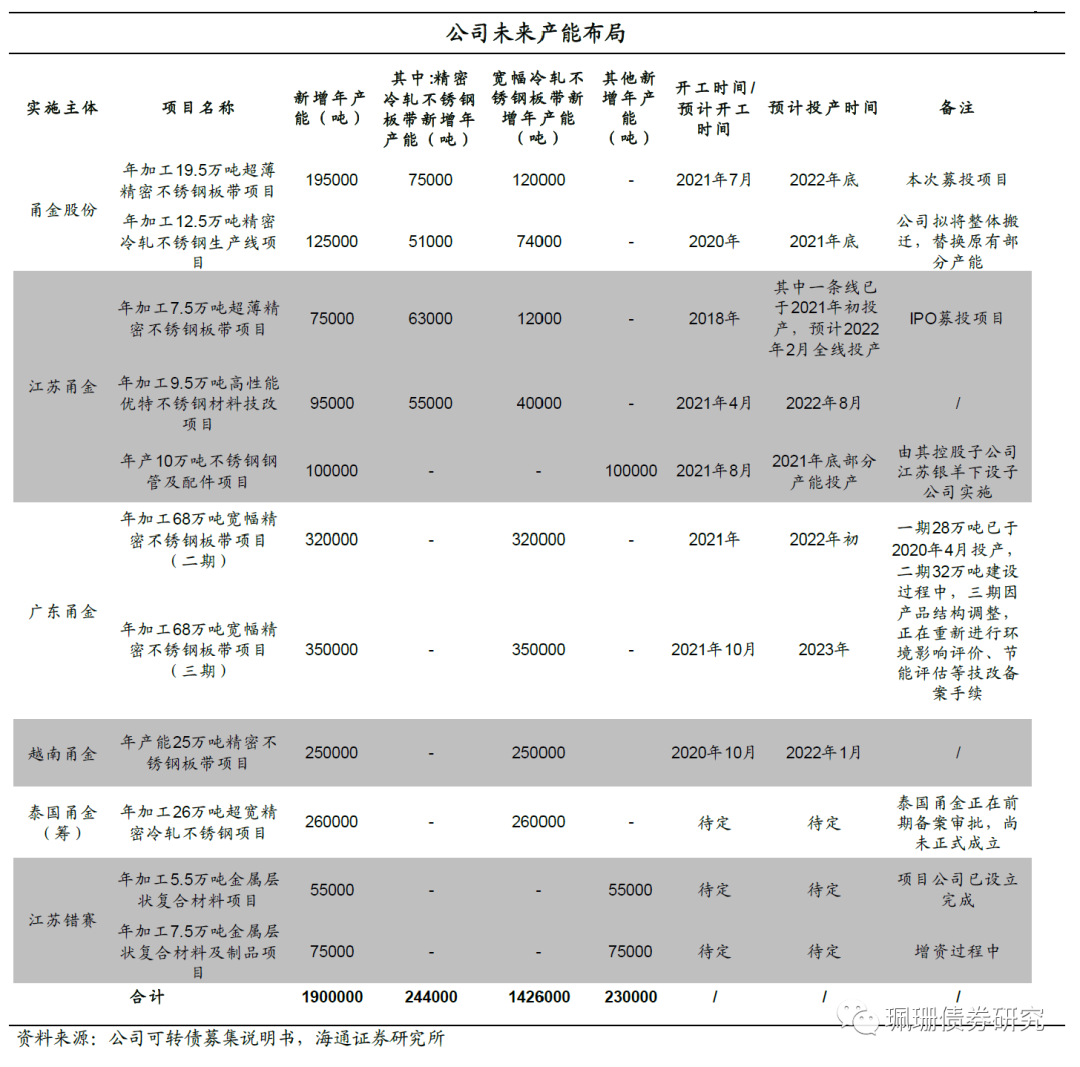 延伸产业链,增强协同效应。根据公司转债募集说明书及21年半年报等,公司300系热轧不锈钢原材料主要向广东广青与青山集团及其同一控制下企业采购,青山集团是目前全球最大的不锈钢生产企业,其子公司鼎信科技持有公司控股子公司福建甬金30%股权,为公司关联方。公司子公司福建甬金收购青拓上克,青拓上克曾为青山集团旗下专业冷轧子公司,进一步加强了与青山集团的合作。另外,公司在2021年上半年收购下游不锈钢供水管道领域银羊管业51%的股权。公司作为直接上游,能够对银羊管业进行直接供应不锈钢冷轧产品并进行个性化定制,达到较好的协同效应。