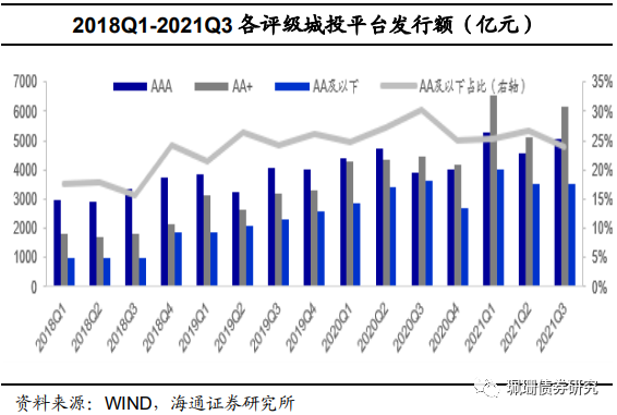 2021年以来,AA及以下发行缩减,区县发行缩减。