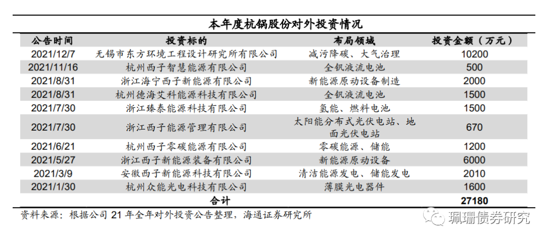 余热锅炉领导者,产品品类齐全。公司设有全国余热锅炉行业归口研究所、国家认定企业技术中心。公司是国家高新技术企业、中国机械工业500强之一、浙江省环保产业基地、国家水煤浆工程技术研究中心认定的水煤浆锅炉研究设计制造基地,在余热锅炉研究开发方面积累了丰富的科研和实践经验。公司研究余热锅炉近50余年,产品覆盖了GE、SIEMENS、MHI、ANSALDO 等国际主要燃机供应商的各类主力发电机型,包括9H级、9F级、9E级、6F级及以下余热锅炉,杭锅股份也是GE公司在中国的唯一合格供应商。公司通过差异化发展模式和“创新合作”的战略,发展了包括生物质发电锅炉、光热储能装备、核电设备等多类清洁能源装备、储能发电装备,已由单一的产品制造商转变为节能环保设备和能源利用整体解决方案供应商。同时,公司持续加强传统产品余热锅炉的技术优化升级,大型9H级和分布式能源燃机余热锅炉陆续研发成功。订单业绩大幅增长,积极拓展海外销售市场。根据Wind统计,公司2020年余热锅炉在手订单金额达31.29亿元,同比增长118%。根据公司三季度订单数据披露公告,2021年前三季度末,公司在手订单76.9亿元,前三季度新增订单69.9亿元,已超过去年全年的新增订单数量。其中,整体解决方案占比明显增加,整体解决方案大部分客户来自石化、化纤行业。目前公司产品在化纤行业拥有较高的市场占有率,客户包括新凤鸣、桐昆、恒逸、荣盛、大连恒力等化纤行业龙头企业,尤其是化纤行业里不少公司新建的自备电厂给公司提供了新的订单,订单的持续增长将为公司2021年业绩提供了充足动能。同时,公司注重与国外先进企业合作,先后与美国N/E公司、GE公司、FW公司、法国ALSTOM公司、日本三菱重工、川崎重工、JFE等国际知名公司展开技术交流和合作。公司将采用海外市场区域负责制以及海外订单OEM等模式,多边拓宽海外市场。目前,公司已在泰国和迪拜设立了办事处并派驻总代表,深耕当地市场,不断取得订单线索。后续公司将在孟加拉、印尼、俄罗斯等国家开立办事处、派驻总代表常驻。积极布局“新能源+储能”业务模式。余热锅炉本质上是热交换器,可应用于光热发电及储能领域。光热发电具有储能调度灵活、储能时间长等方面的优势,在未来参与调峰调度任务的清洁电源中具有广阔前景;光热型储能相对电化学储能具有明显优势,据公司可转债募集说明书援引《2021年储能产业研究白皮书》,熔盐储热的成本只有电池储能的十分之一到三十分之一,效率高损耗低,光热发电技术延伸出的热储能技术为光伏等电网侧储能提供更多选择,储能将成为可再生能源发展的关键支撑技术。公司前期自主研发、设计、制造的50MW熔盐储能系统应用于青海德令哈50MW塔式熔盐储能光热发电项目,是国内首座规模化熔盐光热储能电站,并于2019年成功并网发电,目前已稳定运行,平均发电量达成率为全球同类型电站投运后同期的最高纪录。公司“适用于光热发电领域、以熔盐为传热介质的关键热力装备及系统”荣获2020年度浙江省装备制造业重点领域首台(套)产品。2021年公司对外投资金额共计27180万元,布局领域包括氢能、燃料电池、全钒液流电池等,大力推进“新能源+储能”业务模式。此外,公司拟以不超过15.3亿元收购赫普能源51%股份,以实现火电企业全产业链和全生命周期服务,促进公司快速进入火电企业灵活性改造的巨大市场。公司西子智慧产业园建设及招商运营有序推进,未来拟引进信息产业、智慧能源与环保产业、高端装备研发及围绕产业发展的金融投资主体,打造智能研发、智能制造为主的现代化智慧产业园区。![]()