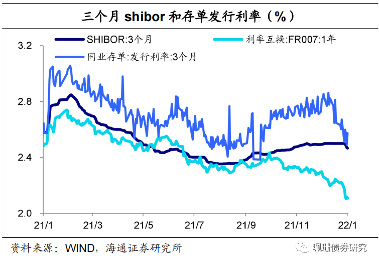 上周,央行开展MLF超量续作呵护市场流动性,下调MLF、OMO、SLF利率,引导LPR利率下降,政策宽松更进一步,21年12月经济数据中消费、服务、基建投资以及地产投资表现不佳,再叠加债市供给回落,国内疫情多地散发,利多因素主导债市大幅上涨,截至1月21日,10年国开/国债收益率纷纷刷新本轮牛市新低、创2020年6月以来新低。相较于前三轮利率低点(16年8月、19年8月、20年4月),当前长端利率低点对应基本面略偏强(PMI回到线上、社融回升),期限利差较平,情绪指标仅弱于20年4月,好在利率相对于政策利率利差最高,随着缴税期过渡后长债利率与资金利率利差或有所回升。后续跟踪社融反弹的力度、地产需求端政策变动、基建回升力度、机构情绪指标变动等情况。我们维持1月17日《超预期降息+超量续作=债牛或将继续——1月17日MLF和OMO降息10BP点评》中的观点,认为:2022年10Y国债利率大概率落在我们年度策略报(《新中枢,低波动——2022年利率债年度投资策略》)的乐观区间2.6%-3.0%,1月利率区间为2.65%-2.85%。利率低位+资产荒背景下,建议关注利率+品种的配置价值,如高等级二级资本债等《债券专题20220119:二级资本债,进阶的利率+品种——金融债系列研究之一》。-------------------------------