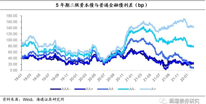 年期二级资本债到期收益率计算与同期限商业银行普通债收益率的利差。具体来看,