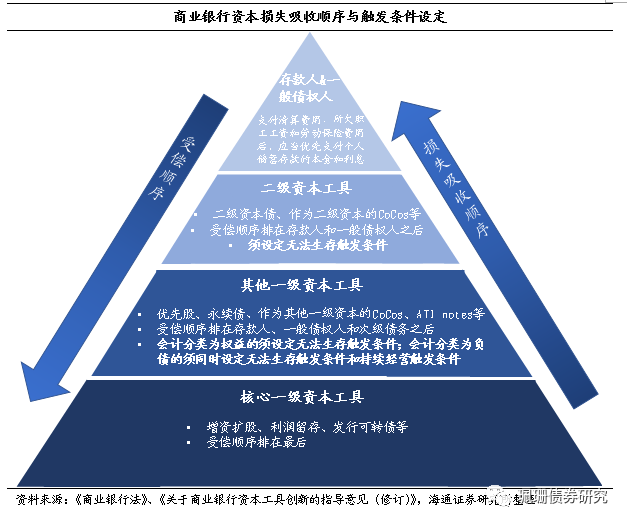 不同级别资本工具依次减记或转股,同级别按比例减记或转股。不同层级的资本工具需设定相应的触发条件。