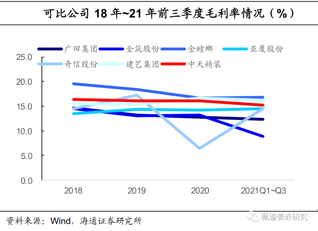 ,近年来有所下滑,但仍高于可比公司平均水平。同时公司的毛利率也高于同业平均水平,公司在执行批量精装修业务时,更多提供的是装修服务,较少对业主方进行材料采购垫款,材料成本占营业成本的比重显著低于同行业可比公司。期间费用率方面,公司