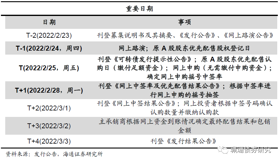 网上发行。绿动转债设网上发行。网上申购日和原股东优配认购日为2月25日(周五、T日),网上申购上限100万元,无需定金。