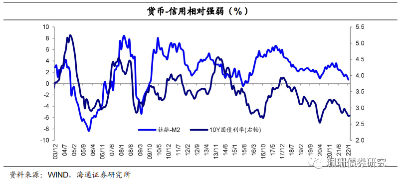总量政策让位于结构性政策,宽信用预期愈发增强,降息预期降温。随着广州下调房贷利率,房地产宽信用预期增强,后续若助力社融超预期回升,或将进一步利空债市。1月社融总量超预期但结构偏弱,而降息无法调节信贷结构,我们认为总量政策让位于结构性政策,再考虑到21Q4货政报告强调“国内经济面临下行压力…部分领域投资尚在探底”,以及政策越早发力越有助于完成全年经济增长目标,我们认为宽信用政策或继续加码,但降息预期降温,当前LPR利率互换隐含的降息预期也较低。此外,从货币信用相对强弱来看,社融-M2增速差拐点虽尚未显现但1月增速差为0.7%、已低于20年4月低点0.2个百分点,至今年1月社融-1Y国开利差已连续3个月回升,整体显示宽信用强度正在逐渐强于宽货币,这意味着债市上行风险增大。