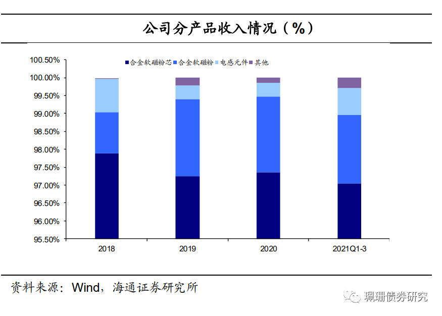 公司注重研发与创新。持续保持较高比例的研发投入,18-20年研发投入占营业收入比重分别为5.47%,5.89%和5.38%,2021年1-9月为5.12%。截至2021年9月30日,公司1005芯片电感项目已进入小批量验证及市场推广阶段,350kg真空气雾化系统开发、雾化工艺参数对粉末收得率影响的研究等9个主要研发项目正在进行中。已获境内授权专利101项,其中发明专利5项,境外发明专利2项。自主研发并掌握了低氧精炼技术、气雾化喷嘴技术、粉体绝缘技术、高密度成型技术、片状粉末制备技术、磁性复合材料技术等关键核心技术。公司正在大力推广芯片电感产品,2021年6月公司与英飞凌签署《系统开发合作伙伴协议》,基于公司的金属磁粉芯、芯片电感元件等产品与英飞凌的半导体产品进行组合,在特定的应用领域,共同开发、设计满足市场和客户需求的系统解决方案。采用独创的高压成型结合铜铁共烧工艺,目前已经完成芯片电感小批量生产线的搭建,正在进行小批量认证;手机芯片电感已实现10M赫兹开关频率内的电感材料产品覆盖。芯片电感市场规模预计在百亿人民币以上,未来市场前景较为广阔,有望成为公司未来一个新的增长极。![]()