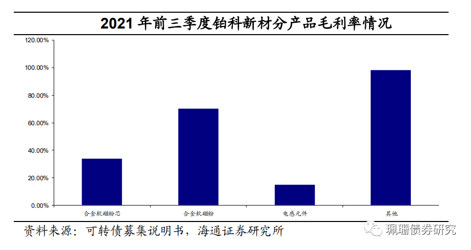 铂科转债发行规模4.30亿元,期限6年,主体信用评级为A+,债项信用评级为A+。网上发行,网上申购日为3月11日(周五、T日)。转债初始平价95.49元(按3月10日收盘价计算),债底72.78元,纯债YTM3.368%。下修条款(15-30,85%)、赎回条款(15-30,130%),回售条款(30,70%),整体看债底保护较弱,条款保持主流模式。申购方面我们预计中签率0.0013%-0.002%左右,上市价格或在120元左右。我们认为股价不出现大幅波动的情况下,转债上市破面的风险不大,一级申购建议积极关注。公司是目前国内唯一一家以研发、生产、销售合金软磁粉芯产品为主的上市公司,主营业务为金属软磁粉、金属软磁粉芯及电感元件的研发、生产和销售。公司是国内少数自主掌握完整的铁硅合金软磁粉制造核心技术的磁性材料企业, 2020年公司主营业务综合毛利率高于同行业上市公司均值,在行业内具有较强竞争力,客户包括ABB、比亚迪、格力、固德威、华为、锦浪科技、美的、TDK、台达、阳光电源、伊顿、中兴通讯等。公司持续推进产能扩张,计划2022年合计达到3万吨以上的产能水平,2024年左右力争实现5万吨/年的产能。同时公司正在大力推广芯片电感产品。正股方面,公司估值(PE-TTM)处于近三年较高水平,近期无解禁压力。风险提示:原材料价格波动、毛利率下降风险、宏观经济环境及政策变化风险、技术创新风险。------------------