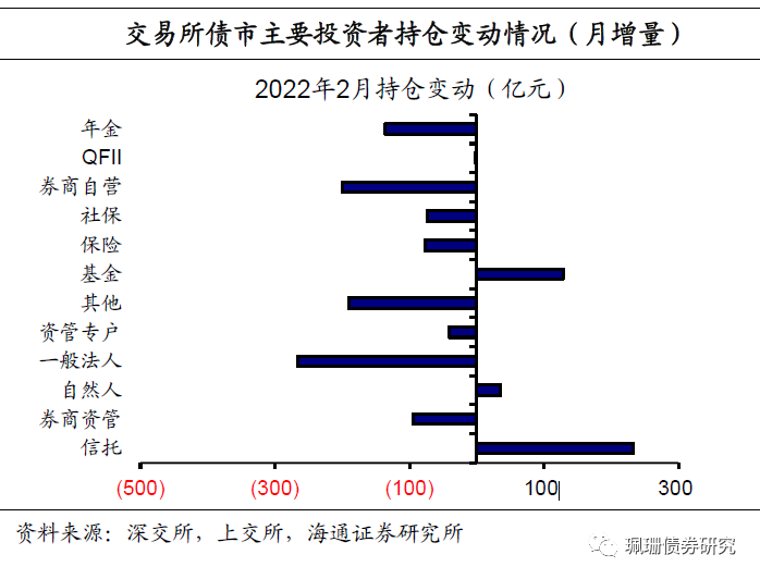 重要提示:《证券期货投资者适当性管理办法》于2017年7月1日起正式实施,通过本微信订阅号发布的观点和信息仅供海通证券的专业投资者参考,完整的投资观点应以海通证券研究所发布的完整报告为准。若您并非海通证券客户中的专业投资者,为控制投资风险,请取消订阅、接收或使用本订阅号中的任何信息。本订阅号难以设置访问权限,若给您造成不便,敬请谅解。我司不会因为关注、收到或阅读本订阅号推送内容而视相关人员为客户;市场有风险,投资需谨慎。22年2月中债登和上清所债券托管总量共计118.9万亿元,环比增加近1.5万亿元,增量环比多增3176亿元。