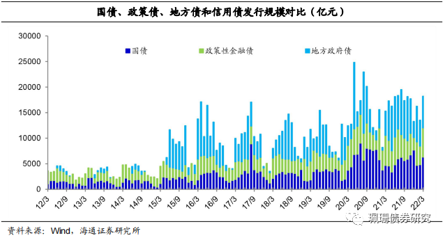 3月利率债净供给为9221亿元,环比增加4278亿元;总发行量18188亿元,环比增加4674亿元。其中,记账式国债发行6300亿元,环比增加1500亿元;政策性金融债发行5701亿元,环比增加2058亿元;地方政府债发行6187元,环比增加1116亿元。截至4月2日,未来一周(4/6-4/10)国债计划发行450亿元、地方政府债计划发行347亿元。