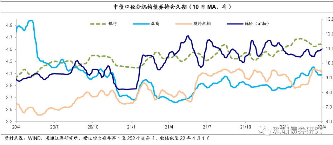 券商和境外机构的债券持仓久期。