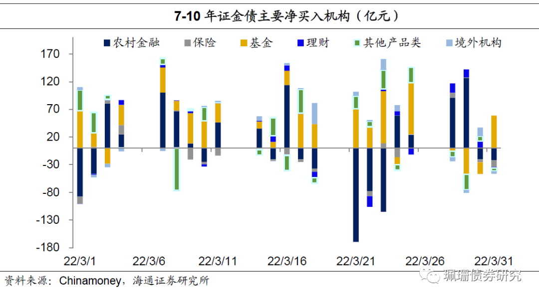 年国债主要是城商行在增持;保险、基金、理财转为增持,农商行增持规模大幅下降,境外机构继续净卖出且规模扩大;