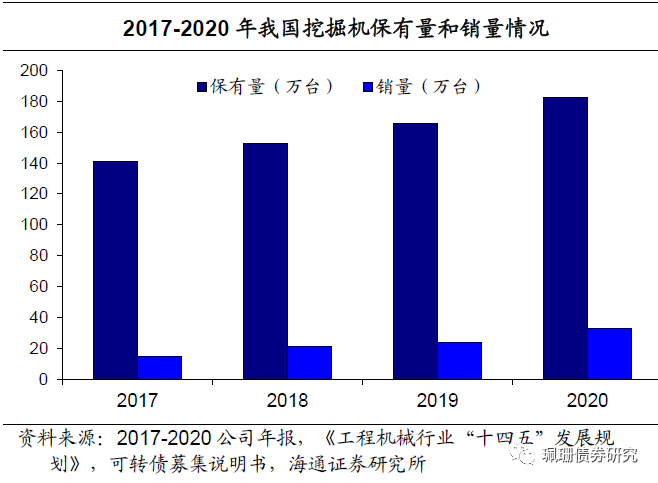 公司液压破拆属具应用领域广泛,具备较大的市场潜力。2018-2021H1,公司液压破碎锤收入分别为6.59亿元、10.19亿元、12.84亿元和7.05亿。公司液压破拆属具主要为液压破碎锤,应用领域包括建筑、市政工程、矿山开采、冶金、公路、铁路等。液压破碎锤是将液压能转换成机械冲击能的机械装置,与挖掘机等液压工程机械配套使用,挖掘机销量和保有量的增长推动了液压破碎锤需求的增长,且随着城镇化建设以及城市基础设施建设的推进,需要大量的破拆作业,将对液压破碎锤形成持续的需求。2017-2020年,我国挖掘机销量由144867台增至327605台,年复合增长率达31.26%;挖掘机10年保有量由141万台增至182.5万台,年复合增长率达8.98%。截至2020年底,国内挖掘机破碎锤配置率为25%-30%,低于成熟市场30%-40%的水平,若以成熟市场配置率来看,我国液压破拆属具市场仍具有较大的市场潜力。