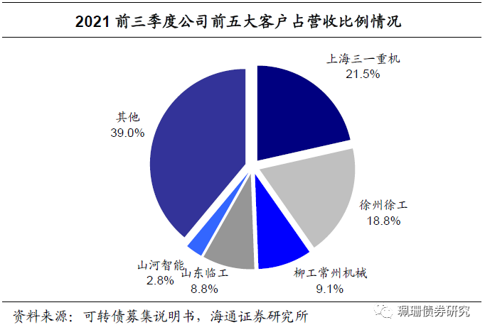 公司下游客户资质较好。公司液压产品具备一定的市场竞争力,下游前五大客户覆盖国内外主流主机厂。上海三一重机股份有限公司、徐州徐工挖据机械有限公司、柳工常州机械有限公司、山东临工工程机械有限公司、斗山工程机械(中团)有限公司和山河智能装备股份有限公司等均为公司下游客户,且销售额占营业收入比重较高。