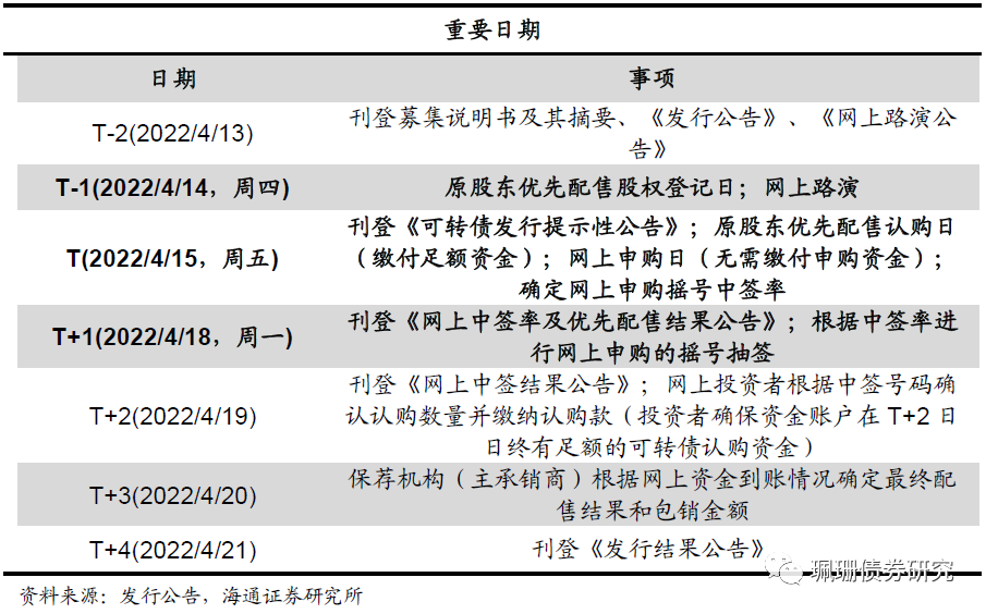 条款为主流模式。6个月后进入转股期,初始转股价为23.96元/股,按照4月13日正股收盘价计算,对应转债平价为99.00元。下修条款(15-30,85%)、提前赎回条款(15-30,130%),回售条款(30,70%)。